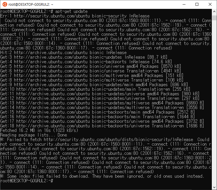 W: Failed to fetch http://security.ubuntu.com/ubuntu/dists/bionic-security/InRelease