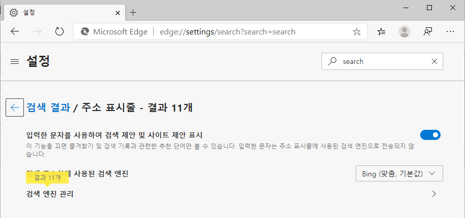 기본 검색 엔진의 변경