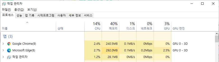 Google Chrome 과 Microsoft Edge 의 시스템 자원 사용 비교