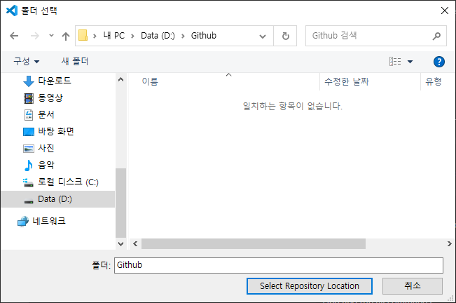 3) git 주소 입력 후 local PC 에 저장될 위치 선택하기