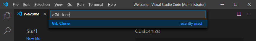 F1 > 'git clone' 입력 > 'Git: Clone' 메뉴 선택