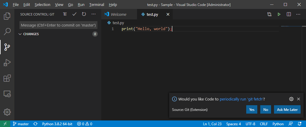 > git ls-files --stage -- D:\GithubCode\Sample\test.py
