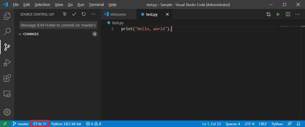 7) 일련의 과정들이 진행되고 하면 하단에 commit 가능한 숫자가 사라진 것을 확인할 수 있음.