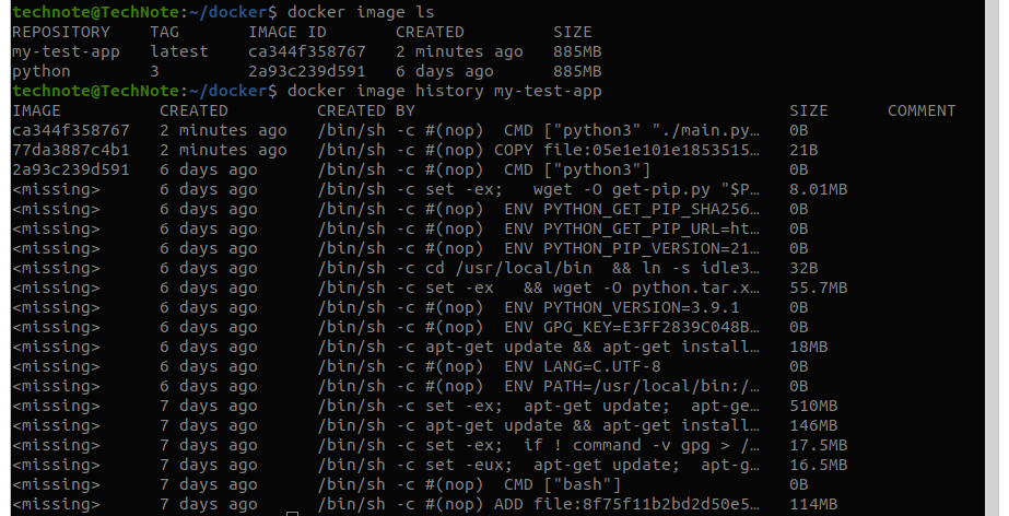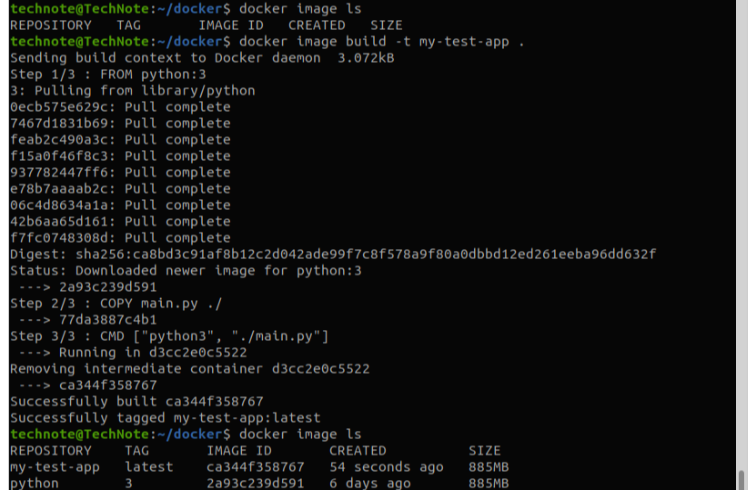 technote@TechNote:~/docker$ docker image build -t my-test-app .