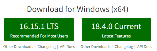 설치 파일 다운로드 링크 : https://nodejs.org/
