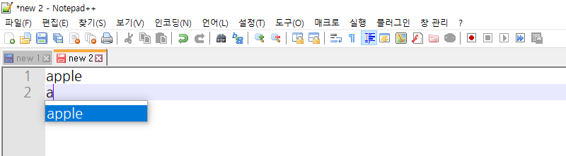Notepad++ 을 사용하다 보면 앞서 나온 단어를 바탕으로 자동 완성 기능이 동작해 불편한 경우가 있다. Code 짤 때는 같은 변수를 사용하는 경우가 많아 유용할지 모르지만 일반 글을 작성할 때는 불편하여 해당 자동 완성 기능 종료가 필요하였다.