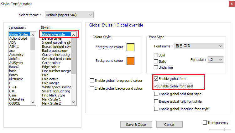 Default Style이 아닌 Global override 에 아래와 같이 선택이 되어 있을 경우 해당 설정이 먼저 적용됨으로 주의 하여야 한다.