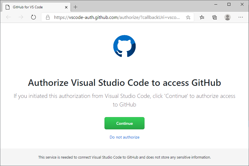 6) 첫 push 시 vscode에서 반영하고자 하는 github repository 에 push 권한 여부 확인이 필요하여 아래와 같은 절차가 진행됨